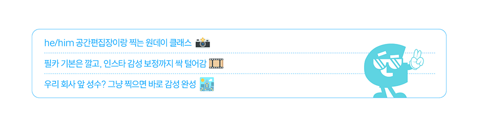 한복판에서 인플루언서 공간 편집장 he/him과 함께 했다.